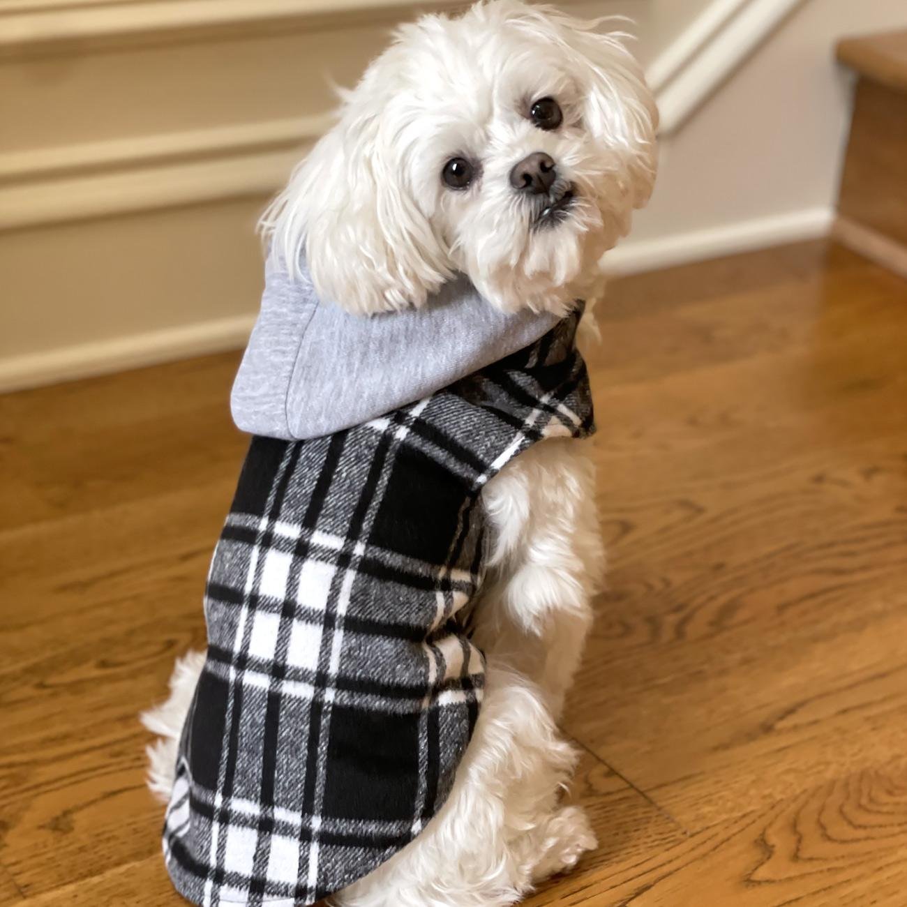 Home > Weekender Dog Sweatshirt Hoodie Black & White Plaid Flannel