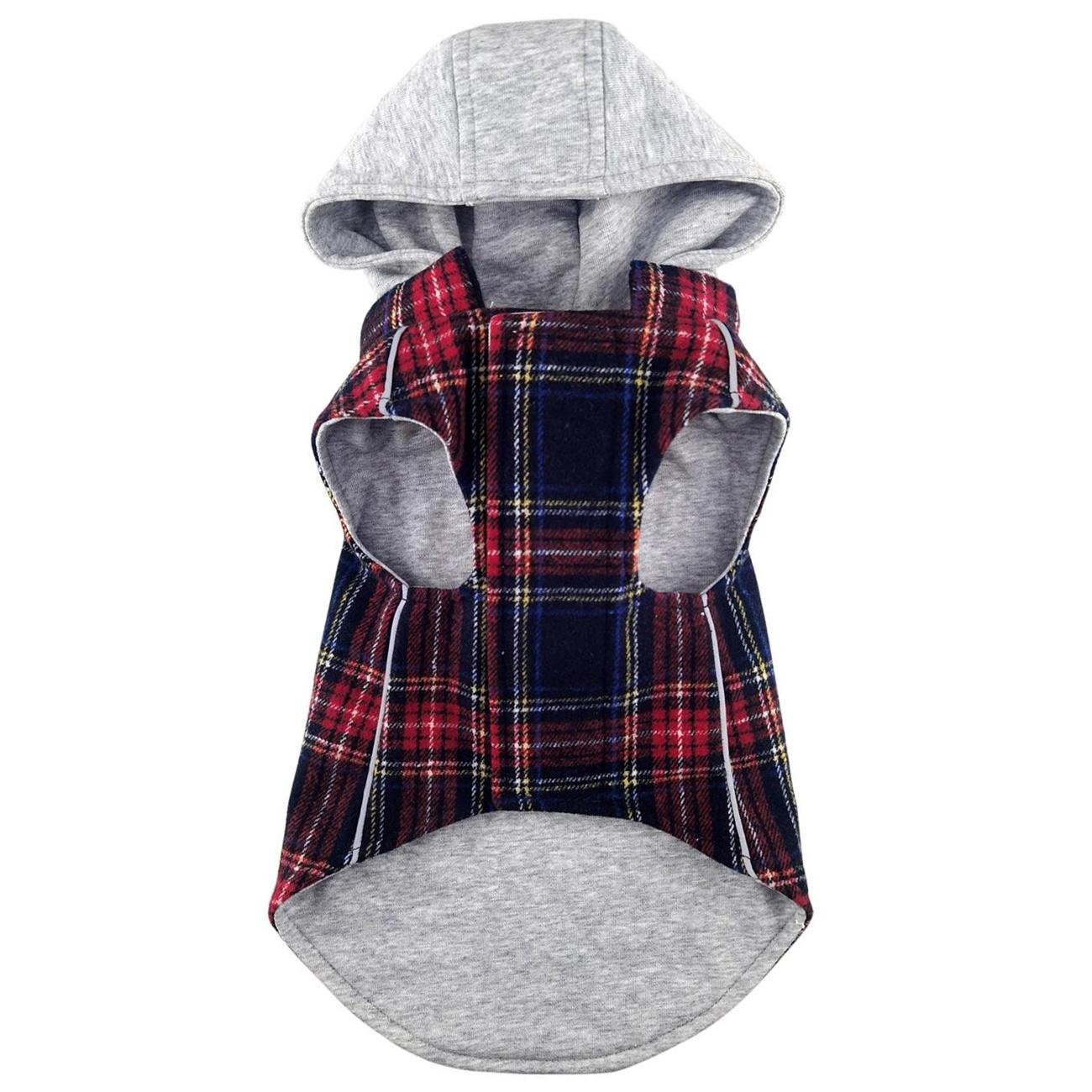 Our quilted Weekender Sweatshirt Hoodies are great for pups on the go! The outer shell is a quilted puffer style while the inner lining is cozy, jersey material. The hood is also made of jersey material and can easily zip off when not needed. Reflective stripping makes your pup noticeable in low light while the two-inch fastener down the chest provides an adjustable closure. Zippered pockets on the back provide a cute finishing detail, as well as an easy place to stash a few treats or a waste bag.